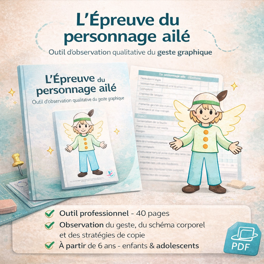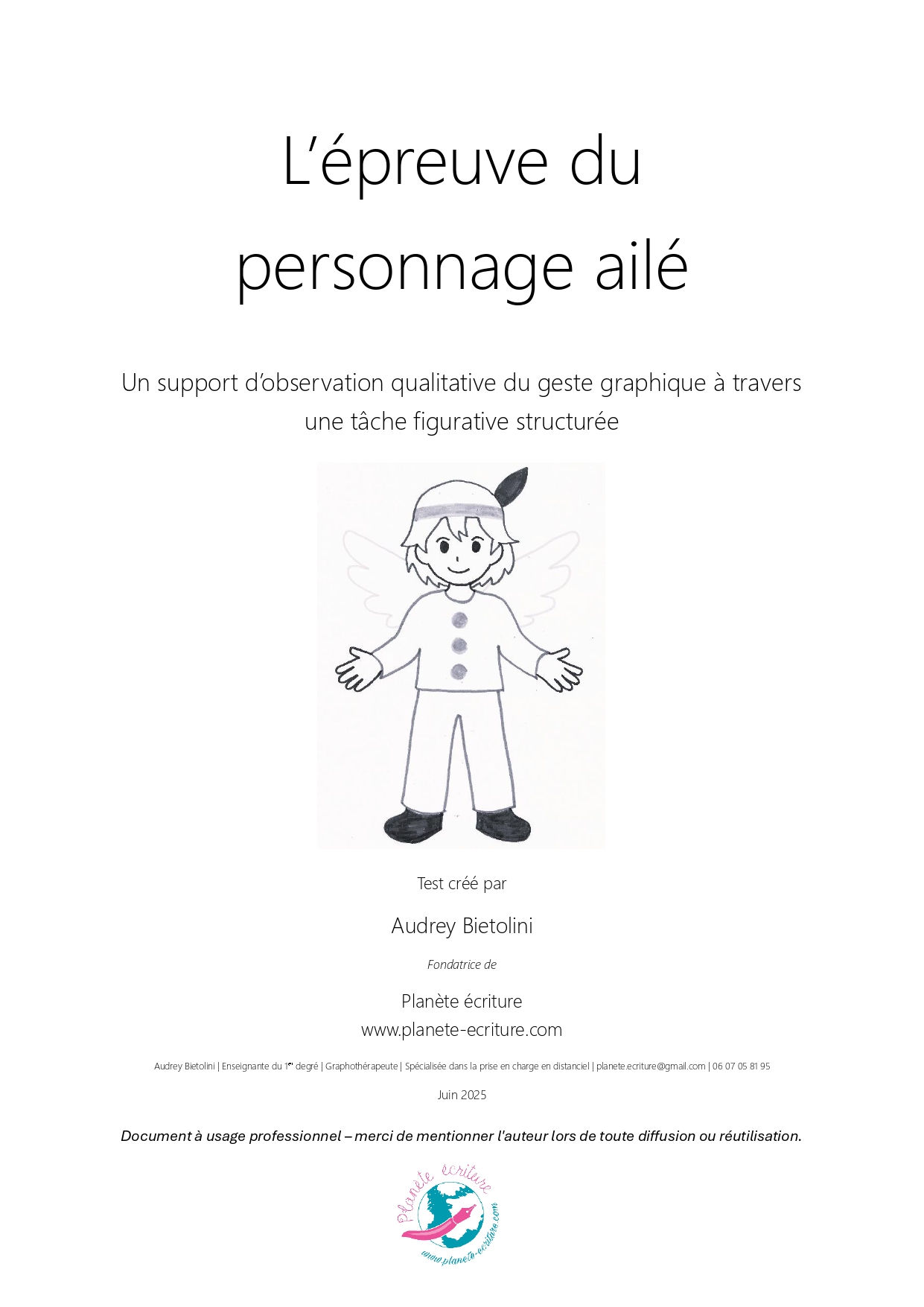L’Épreuve du personnage ailé est un outil d’observation qualitative destiné à évaluer les compétences graphiques, le schéma corporel et les stratégies de copie chez les enfants et adolescents présentant des difficultés liées à l’écriture.